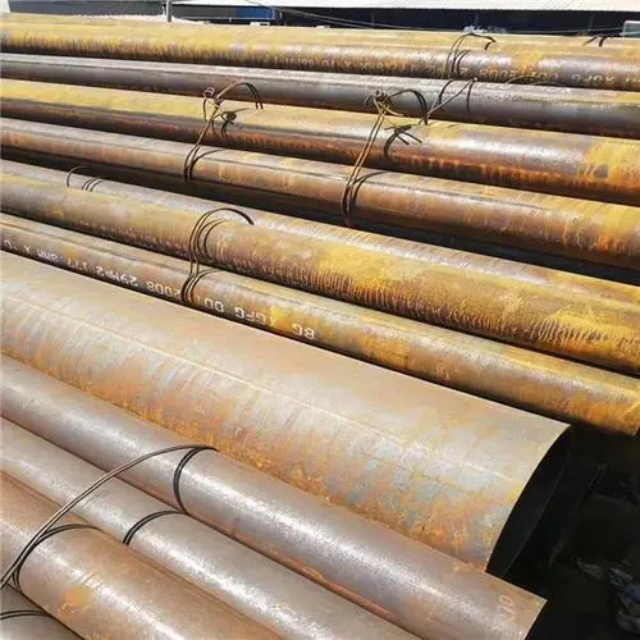 莆田gb3087无缝钢管要用钢锭或实芯管料经破孔制成毛管,随后经热扎、冷轧或冷拨制成。莆田gb3087无缝钢管在中国钢管业中具备重要的位置。据不完全统计,我国目前无缝管生产公司约240多家,无缝管机组约250多套,年产能力约450多万吨。从规格看,莆田gb3087无缝钢管的原料是圆管坯,圆管胚要经过切割机的切割制作成长短约为1米胚料,并经输送带送至溶炉内加温。钢坯被送进溶炉内加温,温度约为1200℃。燃料为氢气或乙炔。炉内温控是关键性的难题.圆管坯出炉后要经过压力穿孔机开展穿空。一般较常见的穿孔机是锥形辊穿孔机,这类穿孔机生产效率高,产品品质好,破孔扩径量多,可穿多种钢种。破孔后,圆管坯就先后被三辊斜轧、连轧或挤压。挤压后应脱管定径。定径机根据锥形钻头高速运转入钢胚打孔,产生钢管。钢管内径由定径机钻头的直径长短来决定。钢管经定径后,进入冷却塔中,根据喷水冷却,钢管经冷后,就要被校直。钢管经校直后由输送带送往金属探伤机(或压力试验)进行内部探伤。若钢管内部有裂痕,气泡等问题,将被检测出。钢管质检后还要通过严格手工选择。钢管质检后,用漆料喷上编号、规格、生产日期等。并由吊车吊入仓库里。